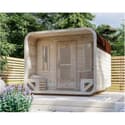 SAWMILL STRUCTURES BoxSauna™ Wood Burning Sauna with 1′ Covered Porch + Two Bench Seats – White Cedar