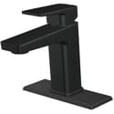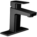 This square Capriza bathroom faucet in matte black helps you to modernize any bathroom décor. A stylish single handle allows you to easily adjust water temperature. Features with a EZ ConX® pop-up drain, an optional deck plate, EZ choice water saving aerator and a drip-free ceramic disc cartridge.