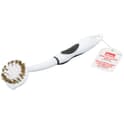 The 10″ wire and nylon bristles of this soft grip pot and pan scrub brush is ideal for scrubbing stainless steel pots and BBQ grills. The crimped brass fibres and built in scraper is great for removing burnt on food and the plastic reinforced handle has a convenient hang-up hole.