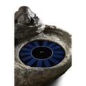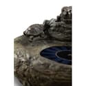 A solar-powered fountain with a turtle made of polyresin. For outdoor use and no socket is needed. Rechargeable by the solar panel.