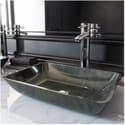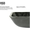 VIGO presents the Rectangular Gray Onyx Glass vessel bathroom sink. It is built from solid tempered glass that is highly safe for everyday use by families. The glass is also resilient to scratches, is non-porous, and prevents fading over time. Thanks to its polished interior and textured exterior, the Gray Onyx Glass sink doesn’t stain and is easy to clean. Its handpainted detailing ensures that no two sinks will ever be exactly alike. This sink can be paired with any VIGO vessel or waterfall faucet to make a complete set. Its subtle light and dark grey etchings give the bathroom a minimalistic look.